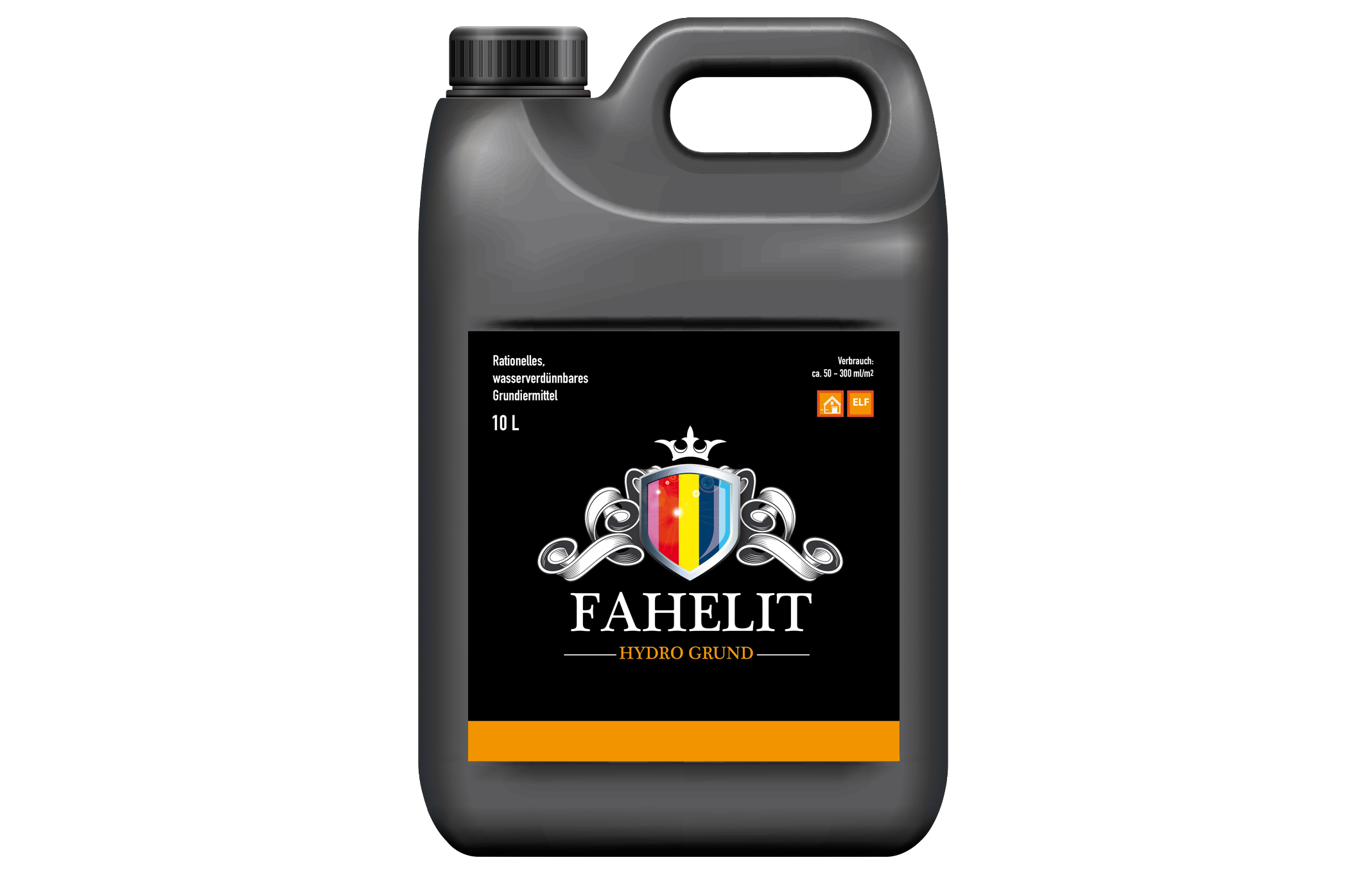Ultrafeindisperses Hydrosol-Spezialgrundiermittel, mit einpolymerisierter Siloxanhaftbrücke, für egalisierende Grundbeschichtungen auf porösen, saugenden, leicht sandenden Putzen, Betonflächen, Kalksandstein-Sichtmauerwerk sowie Gipskartonplatten. Zur Kennzeichnung der Streichspur ist Fahelit Hydro Grund leicht blau eingefärbt.