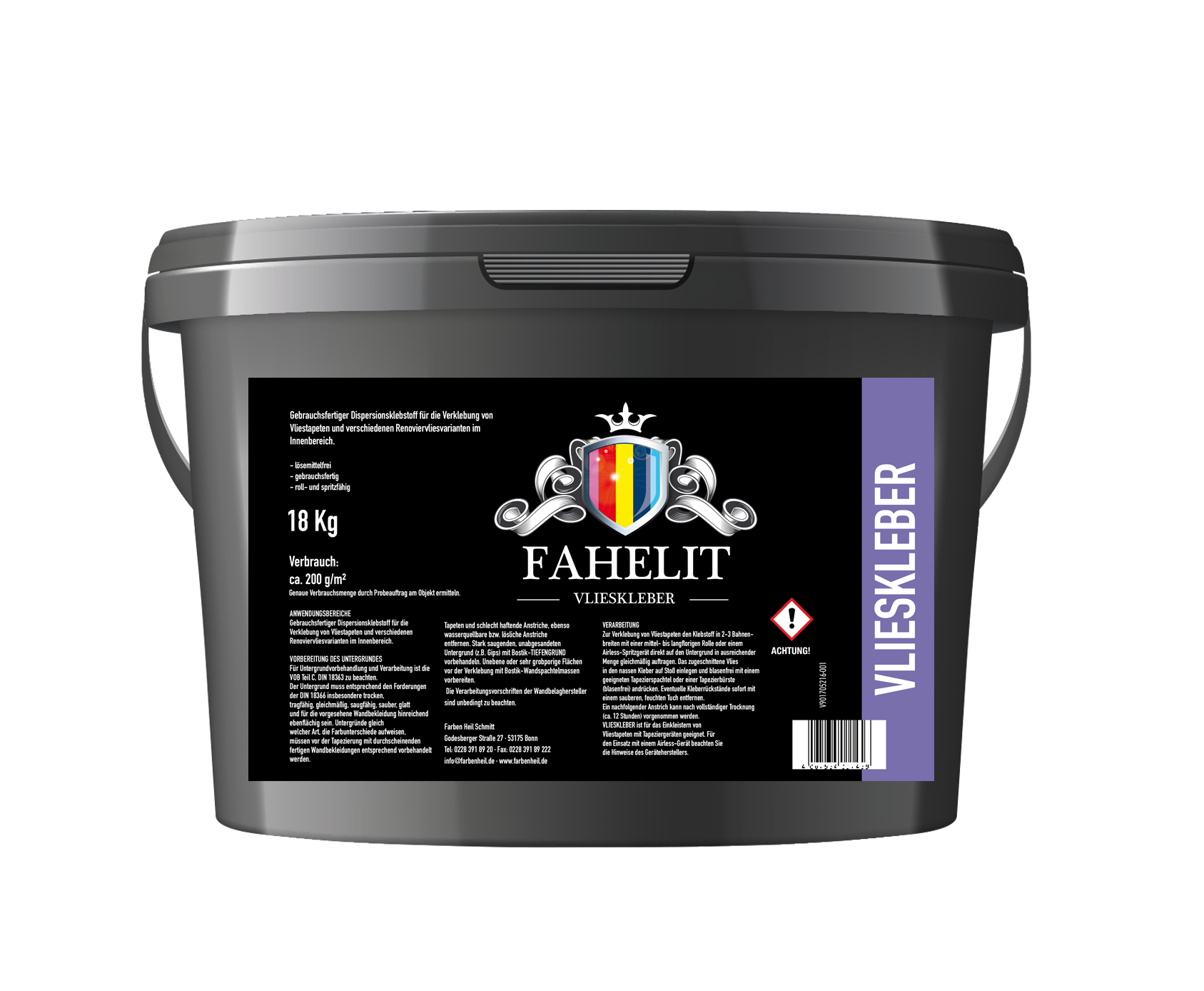 Wasserverdünnbares Grundiermittel gemäß VOB, Teil C, DIN 18363, Abs. 2.2.1, weiss pigmentiert, leicht füllend. Zur Innen- und Außenanwendung. Geeignet für alle leicht saugenden Untergründe wie Kalk-Zementputz, Zementund Gipsputze, Beton, Raufaser sowie tragfähige Altbeschichtungen auf Dispersions-, Silikonharz- und Silikatbasis. Geruchsarm, nicht brennbar, diffusionsfähig, lösemittel- und weichmacherfrei. Als Grundanstrich für alle Fahelit Farben Dispersions- und Silikonharzfarben geeignet.
